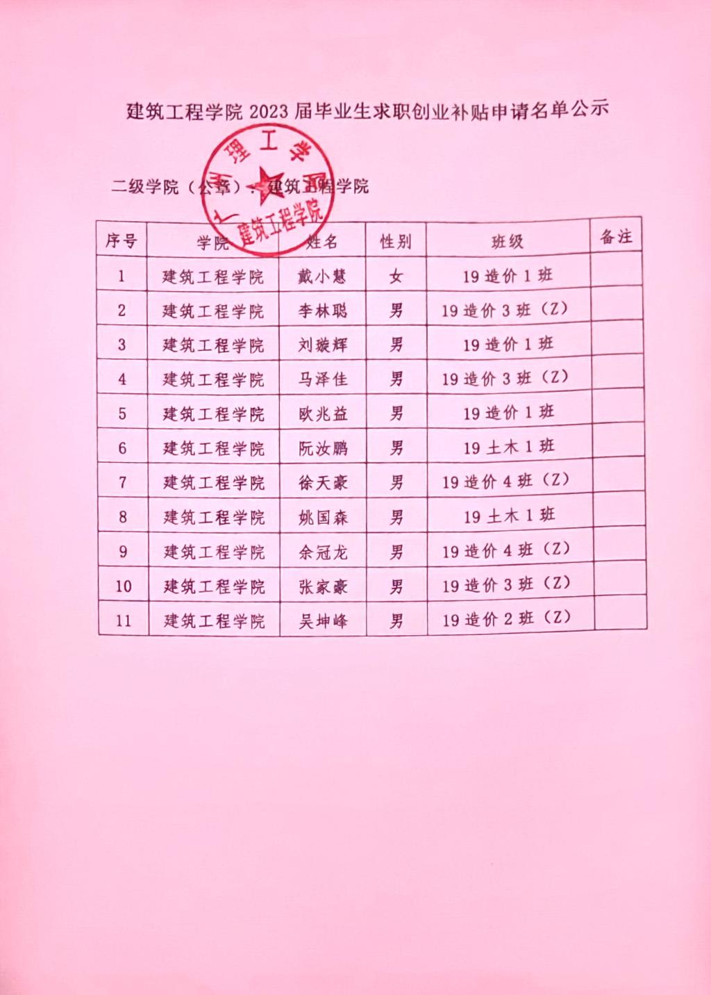 williamhill中国官网 2023 届毕业生求职创业补贴申请名单公示