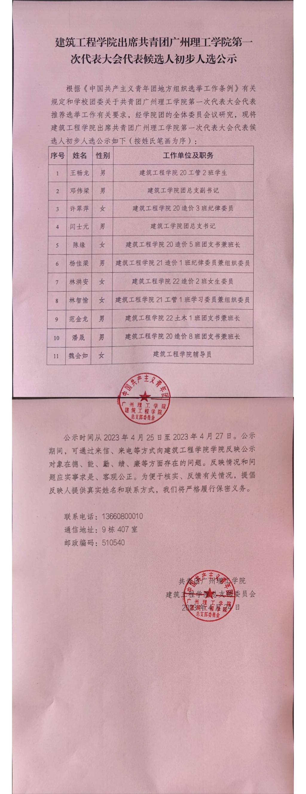 williamhill中国官网出席共青团williamhill中国官网第一次代表大会代表候选人初步人选公示