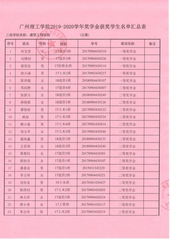 williamhill中国官网2019-2020学年奖学金获奖名单公示