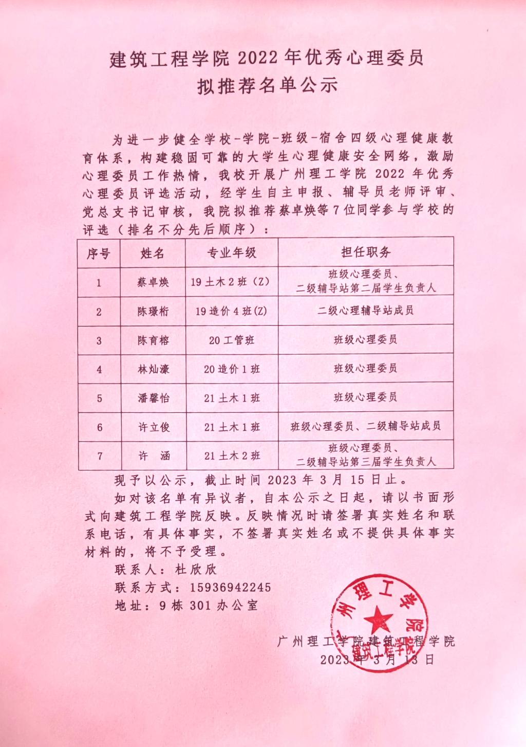 williamhill中国官网2022年优秀心理委员拟推荐名单公示