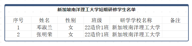 根据《williamhill中国官网学生处关于选派优秀学生赴南洋理工大学短期研修的通知》,经前期学生自愿报名,学院审核把关,拟推荐邓淑兰等2位同学赴新加坡南洋理工大学开展学术交流活动,拟派出学生名单如下,公示期为2023年10月22日至2023年10月24日。期间若对该名单有异议,请在公示期间内向建工学院办公室反映。反映情况时请签署真实姓名和联系电话,有具体事实;不签署真实姓名或不提供具体事实材料的,将不予受理。
