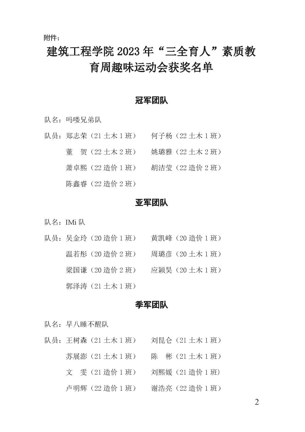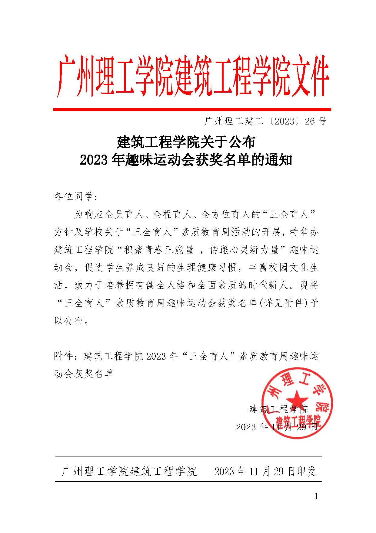 广州理工建工〔2023〕26号-williamhill中国官网关于公布2023年趣味运动会获奖名单的通知