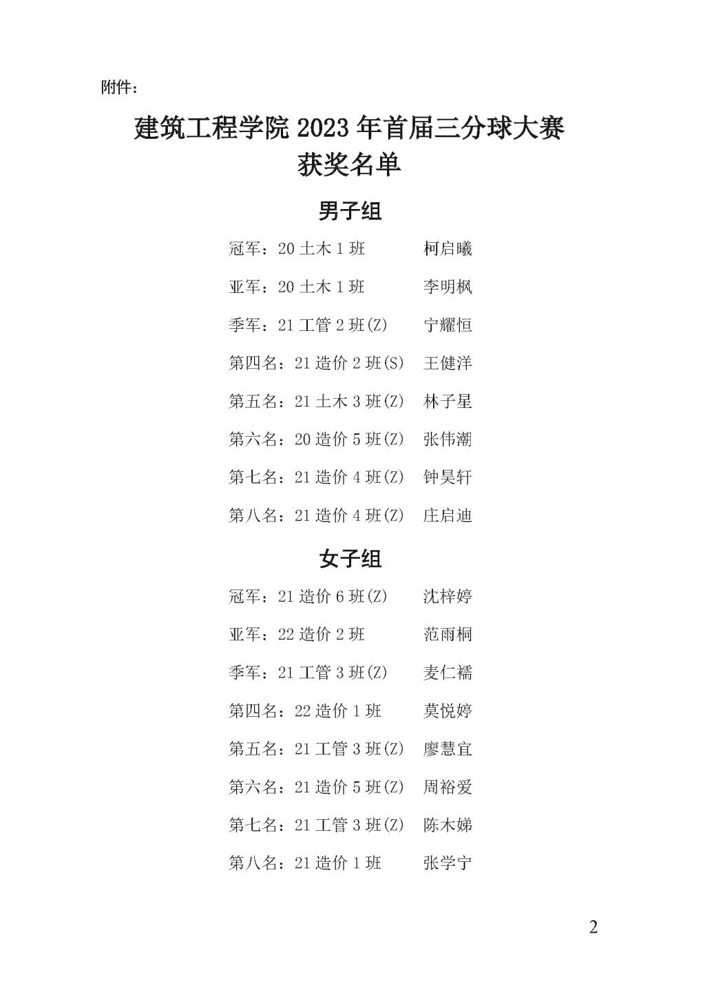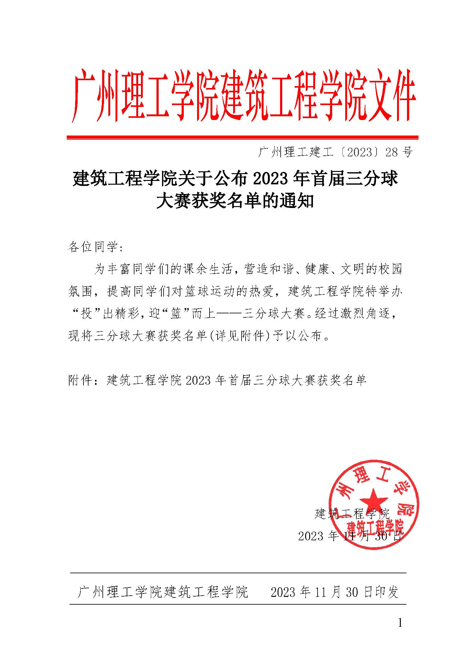 广州理工建工〔2023〕28号-williamhill中国官网关于公布2023年首届三分球大赛获奖名单的通知