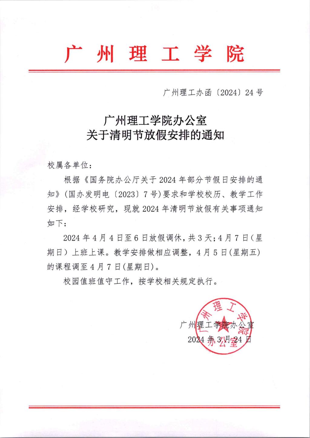 关于清明节放假安排的通知