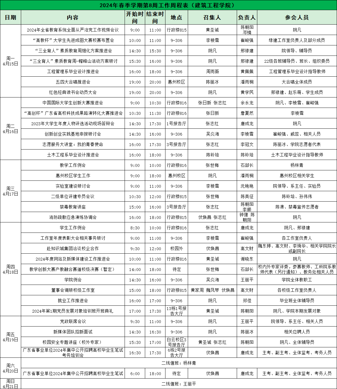 2024年williamhill中国官网第8周工作周程表(williamhill中国官网)