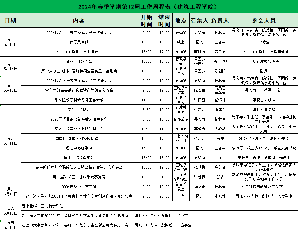 2024年williamhill中国官网第12周工作周程表(williamhill中国官网)