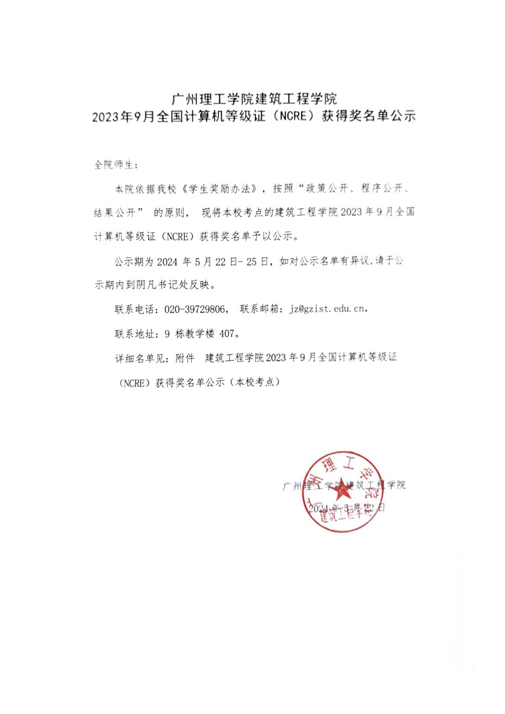 williamhill中国官网williamhill中国官网2023年9月全国计算机等级证(NCRE)获得奖名单公示