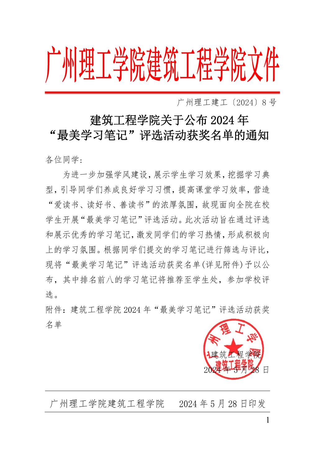广州理工建工〔2024〕8号-williamhill中国官网关于公布2024年“最美学习笔记”评选活动获奖名单的通知