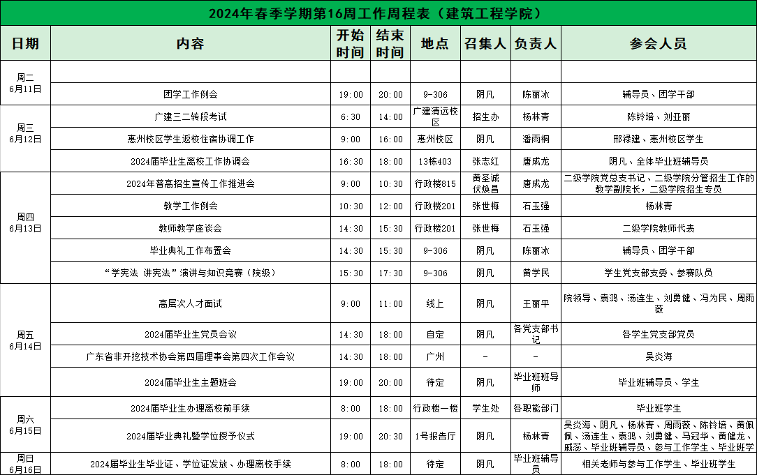 2024年williamhill中国官网第16周工作周程表(williamhill中国官网)
