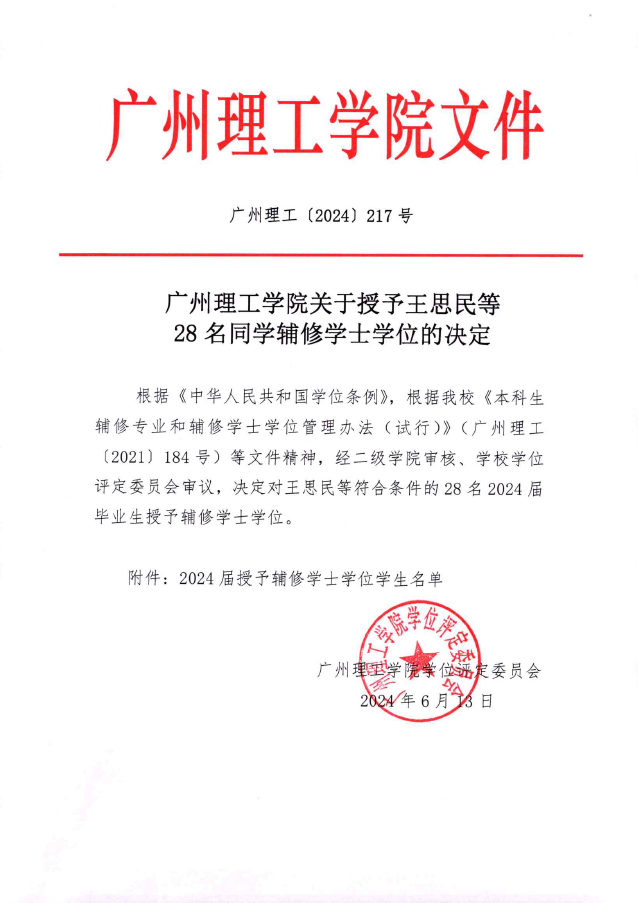 关于授予王思民等28名同学辅修学士学位的决定.pdf