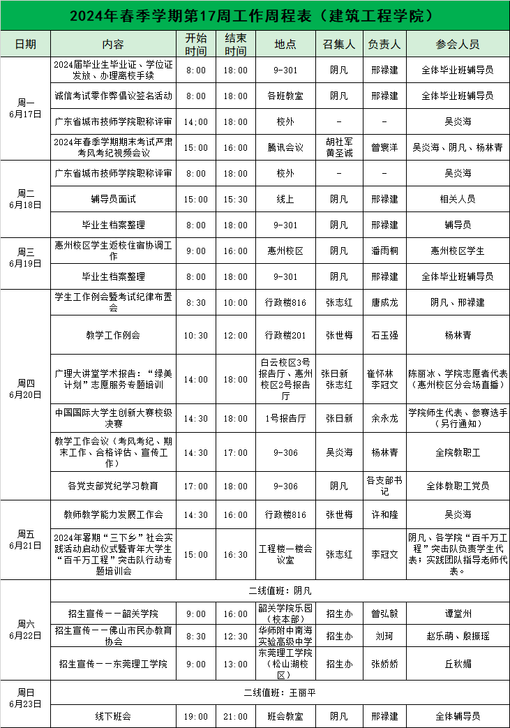2024年williamhill中国官网第17周工作周程表(williamhill中国官网)