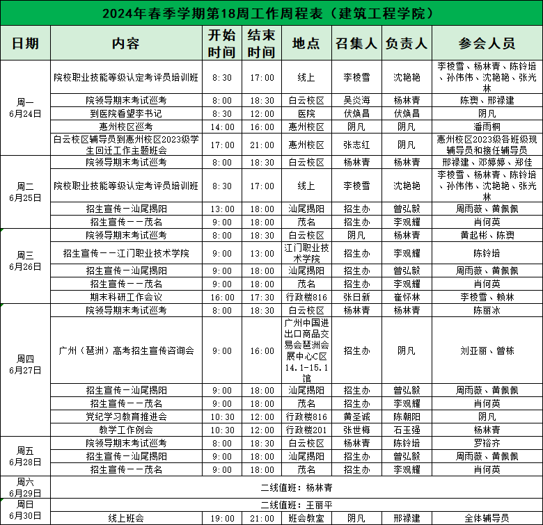 2024年williamhill中国官网第18周工作周程表(williamhill中国官网)