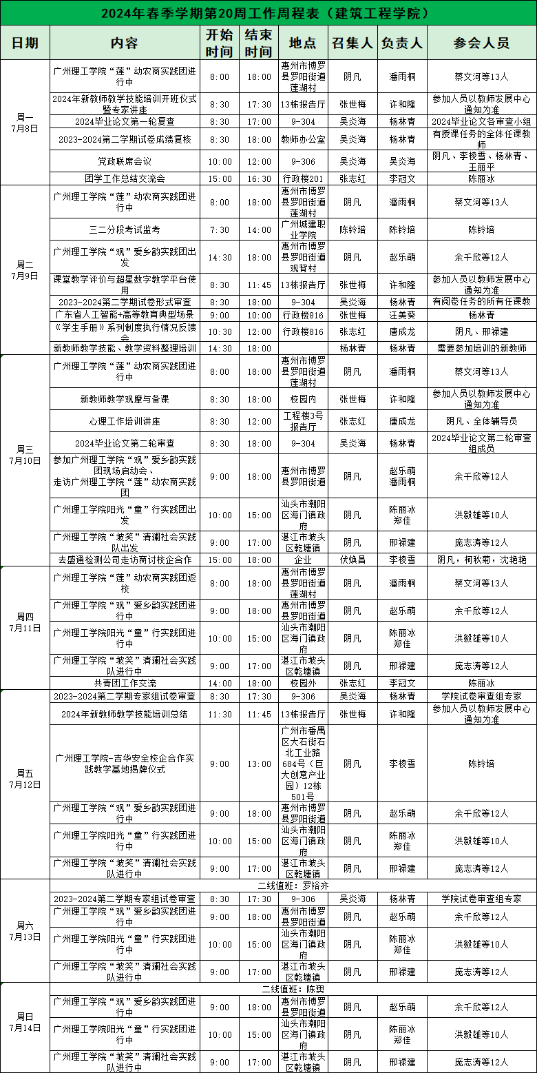 2024年williamhill中国官网第20周工作周程表(williamhill中国官网)