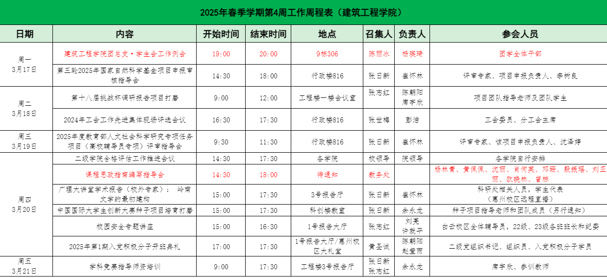 2025年williamhill中国官网第4周工作周程表(williamhill中国官网)