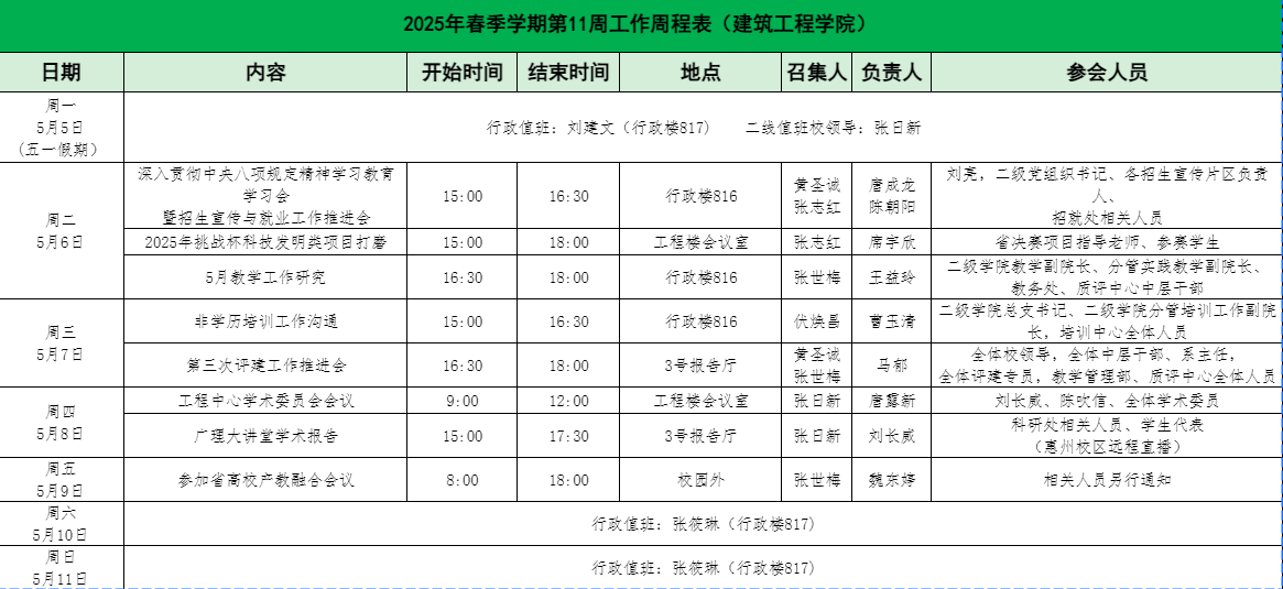 2025年williamhill中国官网第11周工作周程表(williamhill中国官网)