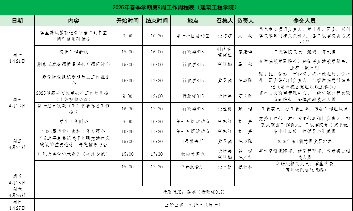 2025年williamhill中国官网第9周工作周程表(williamhill中国官网)