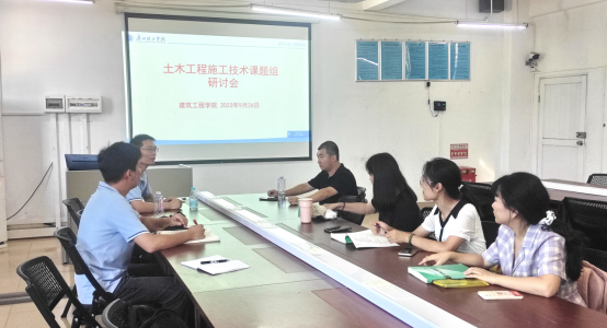 (通讯员:张威威)9月26日下午,为迎接我校本科教学工作合格评估,为评估工作增砖添瓦,发挥老教师“传帮带”的积极作用,根据学院教学工作安排,土木工程施工技术课题组在9栋506召开新学期课题组交流研讨会。土木工程系张威威老师主持会议。