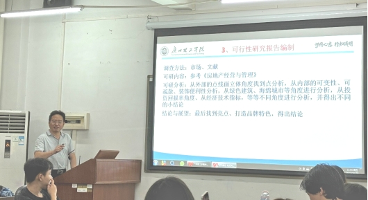 侯庆华副院长向同学们讲解了可行性研究报告编制方向开题报告撰写的相关内容及思路;参加答辩的同学们明确了答辩的环节与时间分配,并再次强调了答辩过程中的答辩纪律。