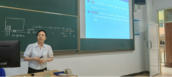 陈奕老师根据结合《土力学与地基基础》中土压力的计算进行了讲解,其授课内容知识点分布清晰,层次分明,由浅入深,让不同专业的教师都能听懂其相关的教学内容,达到了磨课要求。孙伟伟老师《工程造价管理》课程中的工程招标相关的为基础,分别从招标、投标的要求、规定及执行方面进行了授课,课程内容合理,课堂氛围较好,互动交流频繁,提高了学生的积极性。课后各位教师针对老师们的授课情况,对PPT的制作、课程重点等进行了点评并提出改进建议,帮助磨课老师提升教学技能和丰富教学方法。